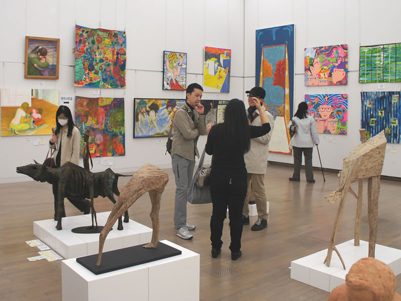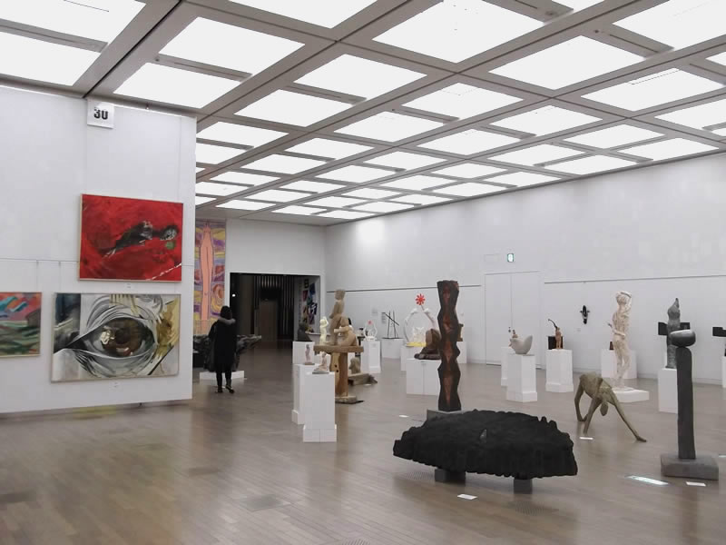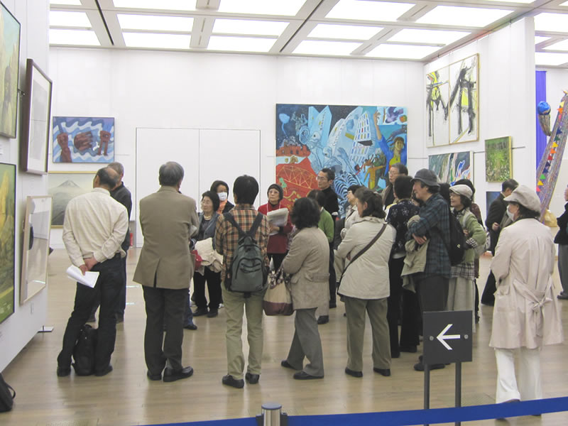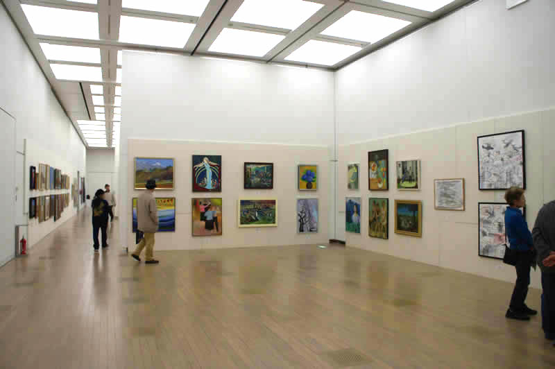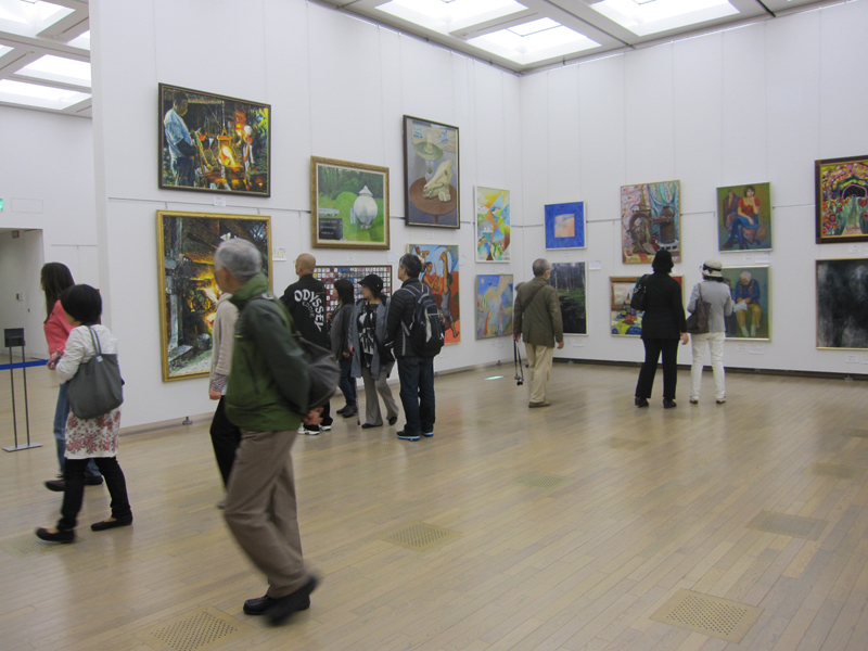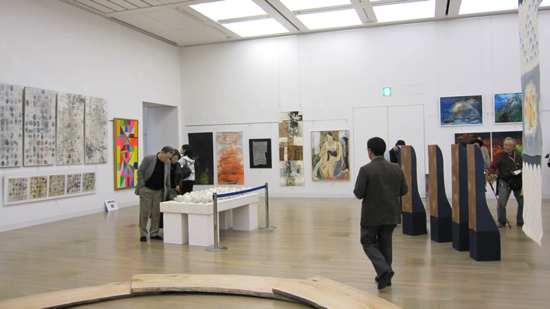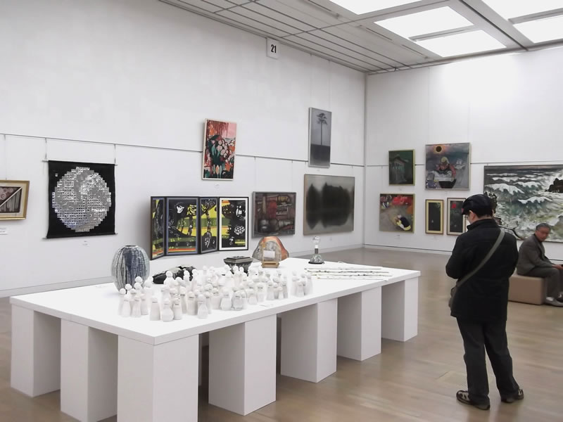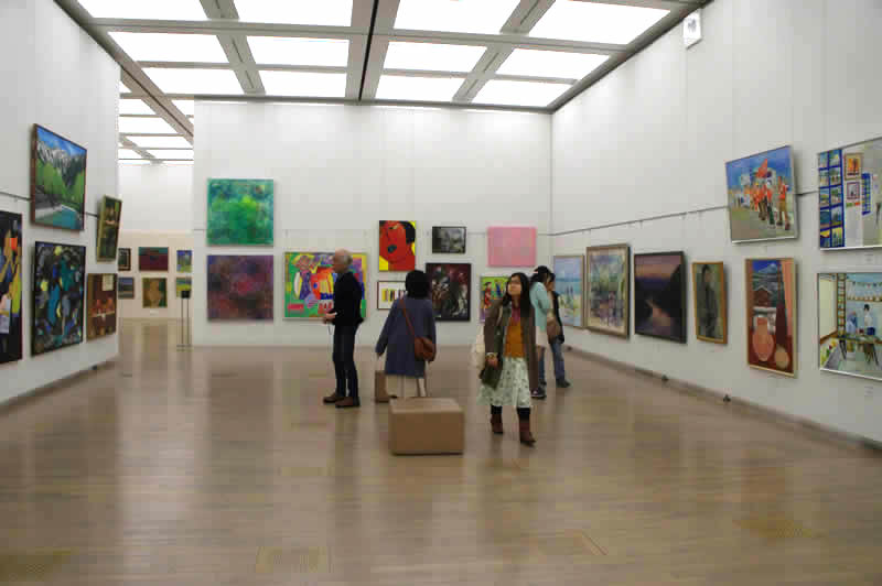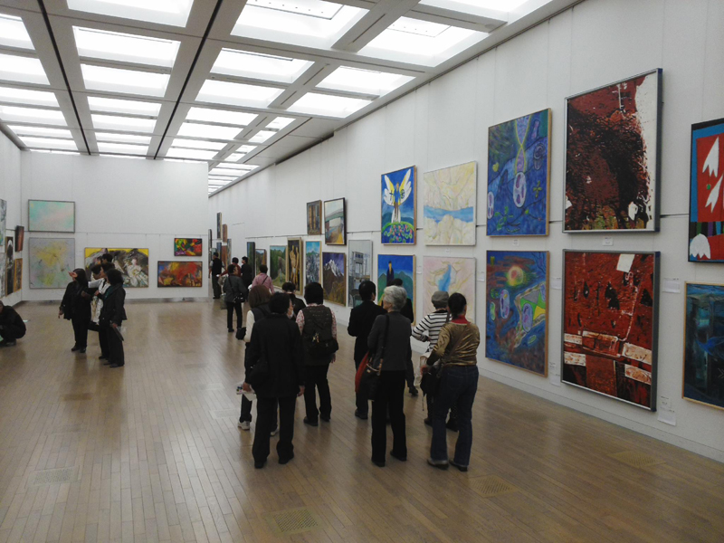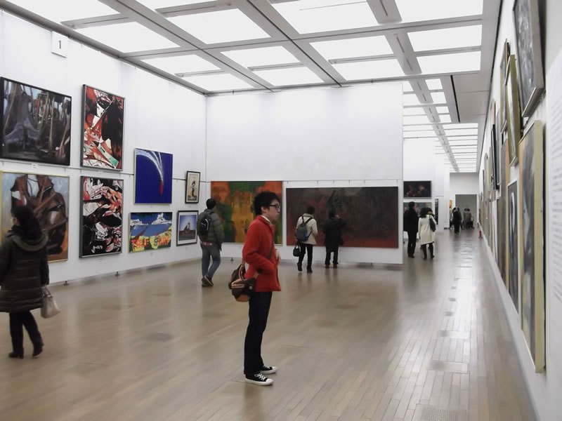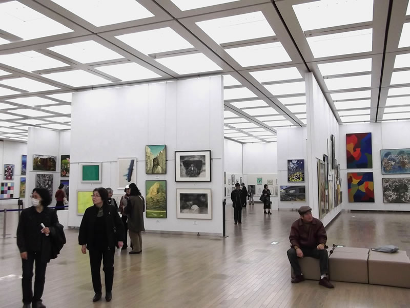広く明るい国立新美術館は多様な作品群のステージです。毎年、1万数千人の鑑賞者が集います