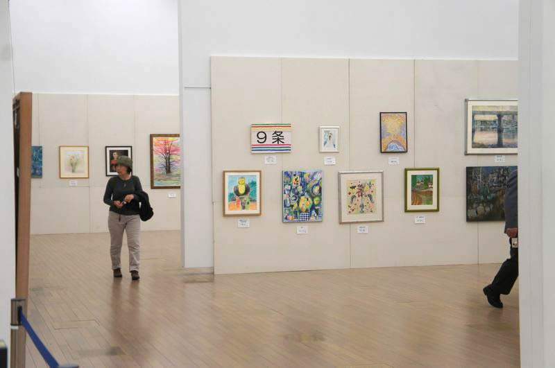 何点かを並べる組作品はインスタレーションスペース展示として扱えますので、ご相談ください。面積・料金はそれに準じます。2月20日(土)までに展示構想をメモした「企画書」(日本美術会から取り寄せ、またはダウンロード)を出してください。