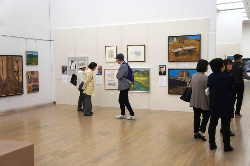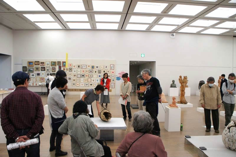油彩、水彩、きりえ・版画、日本画、インスタレーション、彫刻など、ジャンル別に作品交流します。