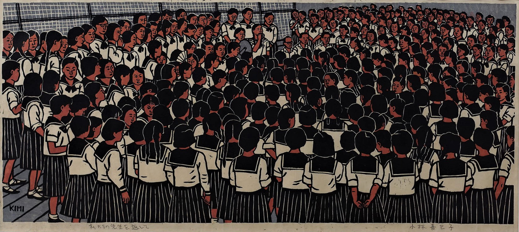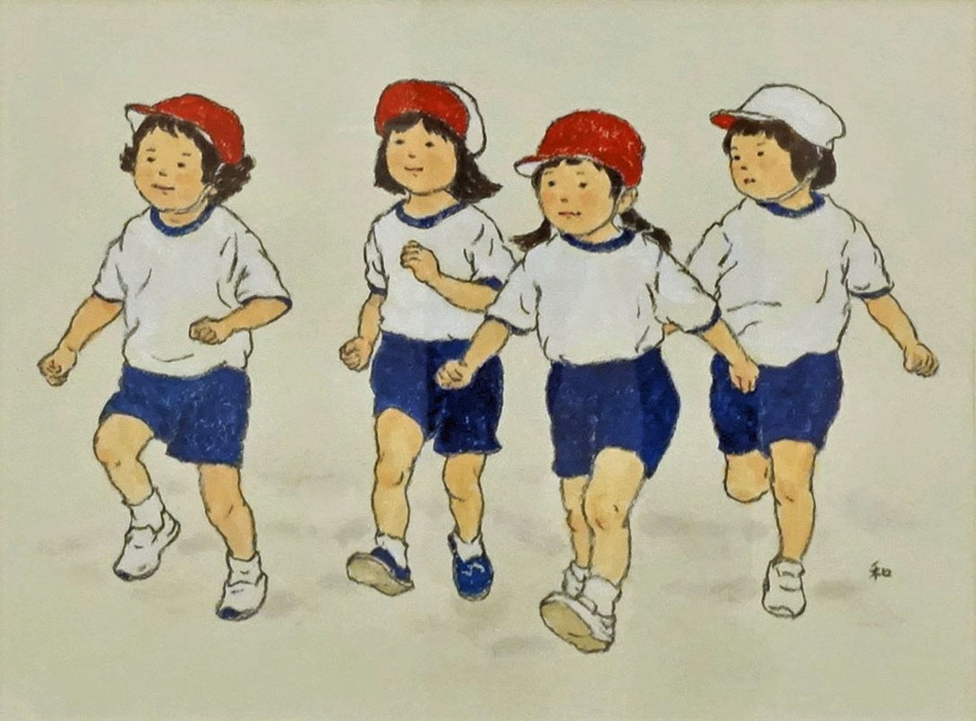 いわさきちひろ「シクラメンの花の中の子どもたち」 『戦火のなかの子どもたち』より ピエゾグラフ