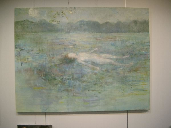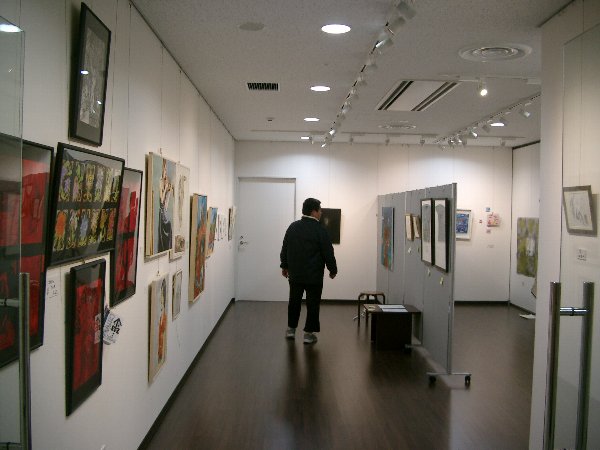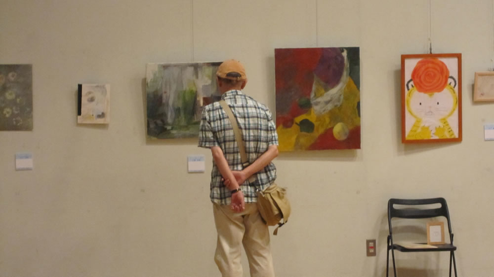 今回展の収穫は、出品者同士が知り合い、語り合い、親交を深めることが出来たことではないかと思います。第一回展ではなかなか交流の場面も取れず、個々バラバラの参加の感が残りましたが、今回は出品者同士が「あなたの作品は?」とお互いの作品を紹介し合い、意欲的に語り合う姿が目立ちました。一日目の交流会は広い会場で絵を前にしての交流が出来たこともあり、話がはずみ、5時から始まり、とりあえずの終了時間の7時以降もみんなの語り合いは閉館9時まで続きました。