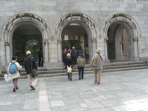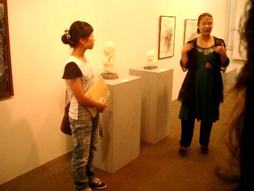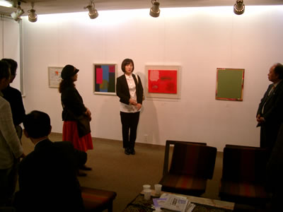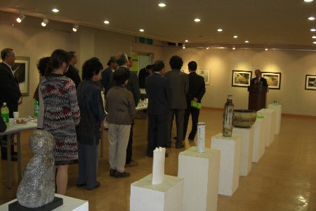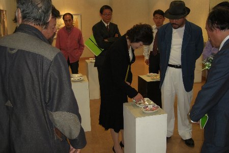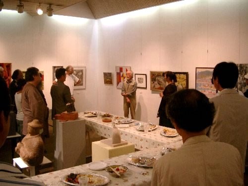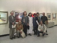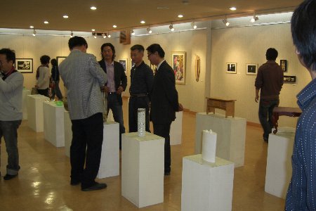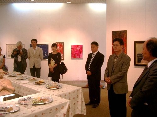 公州との美術交流は交互に6回目を迎えた。公州では「百済文化祭」時に実施され、20名以上の初韓国 体験と人的交流が行われ、日本では今まで京都で二回実施された。これにも韓国から20名近い美術家が日本に来て、日本の文化について理解を深め、人的な交 流もされた。作品展も1回目は京都市美術館別館で、二回目は国際交流会館と近くの画廊の二会場で行われた。今回は初の東京、日本橋「好文画廊」で9月16 日~21日に開催。公州から8名の美術家が訪日、16日~19日まで、3泊3日で、ツアーを組んで、車をチャーターし、独自に東京の美術館などめぐったわ けで、日本美術会としての東京案内のサポートがなくなり、助かった面があったが、人的な交流が少なくなったという事では残念な面もあった。しかし、これも 財政的な問題から、今回から基本的には自ら経費を出しての訪日ということで、合理的な解決をしたという面もあったろうから、それも1つのやり方だろうと思 う。16日のオープニングパーティーとその後の歓迎夕食会:(韓国から8名、日本側から25名の参加)17日は今後の交流について会議(5名で)。18日 はお別れ夕食会(韓国から7名、日本側から8名の参加)。作品を見て、お互いを知り、夕食会などで親しくなる、理解を深めるというパターンだったが、お土 産の交換とか、(花瓶と小皿5つもらう)こちらからは伝統的なデザインのハンカチをプレゼントした。作品の送付では航空速達を使ったが、受取るときにトラ ブルがあったが、税関の電話を受けた人がたまたま職美のメンバーの人で、スムーズに運んだという事があったので、そのことも多くの協力の賜物と云う点で、 書いておきたい。(K)