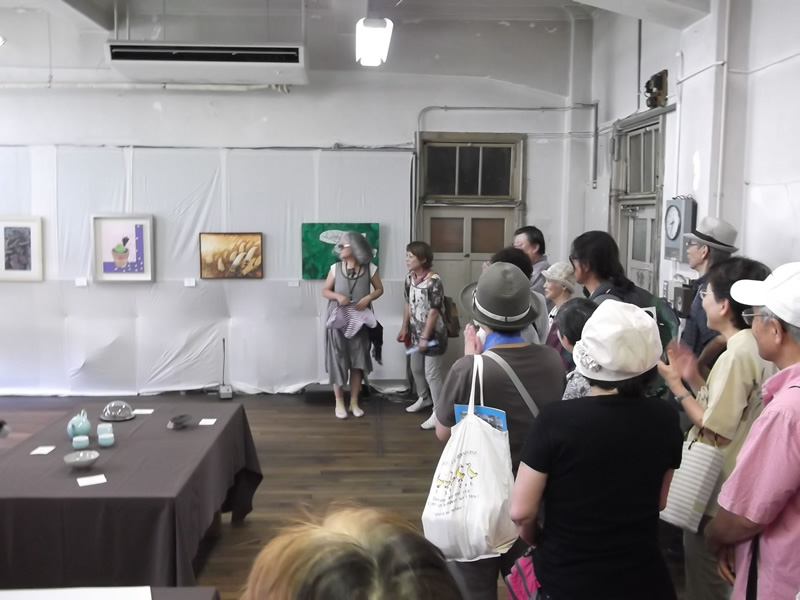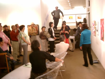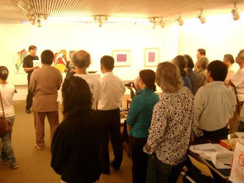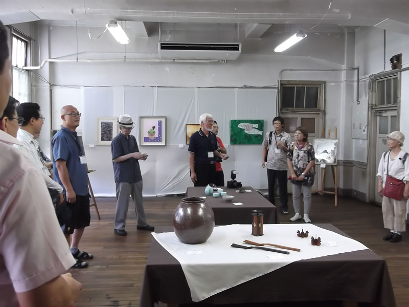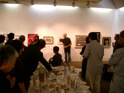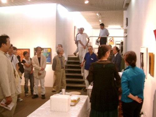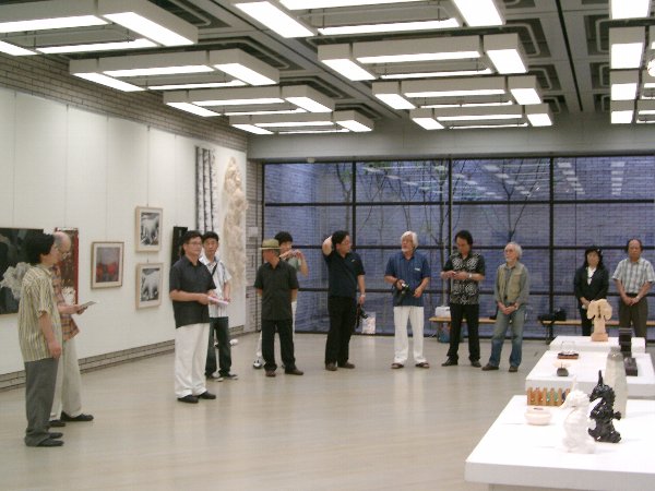 韓国から公州美術家7名が8月2日から5日まで来日された。3日は六本木周辺見学の後来館、展覧会のオープニングでは各作家が作品への想いを熱く語ってくれた。
