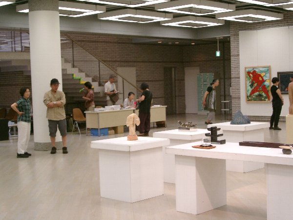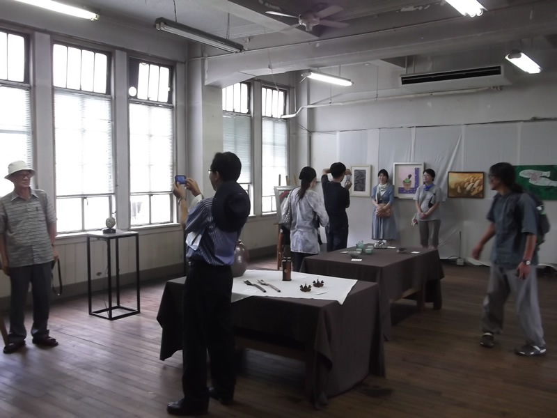 公州からの作品は平面より工芸作品が多かったが、可動壁をなくし、全面が見通せるように展示したので、すっきりと見やすかったと思う。来客数は猛暑の中駅から歩かなければならない美術館なので多くはなかったが、来館された方は好意的に見てくれて嬉しかった。韓国の方からも、奈良さんの踊りからオープニングセレモニーを始めたことや、出品作品も良かったとの意見を聞いている。