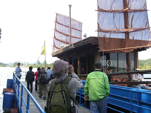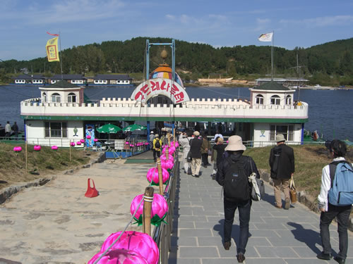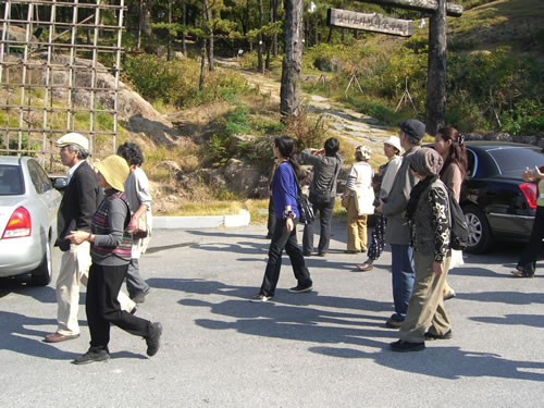 10月7日;仁川空港で関西組、前夜からソウルに滞在組と合流し、4人の通訳と一緒に、貸切バスで公州へ向かった。EunYonGol でカモ料理の歓迎会。1年ぶりの懐かしい方達と再会した後、錦江温泉モーテルに宿泊した。2年前に泊まった時とは食堂経営者が変わっていて、朝食もおいしく、ここで4泊し、温泉やマッサージも楽しめた。