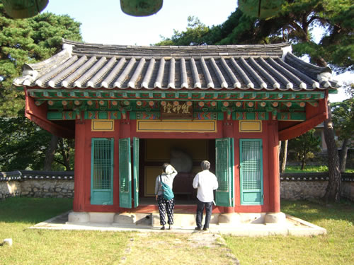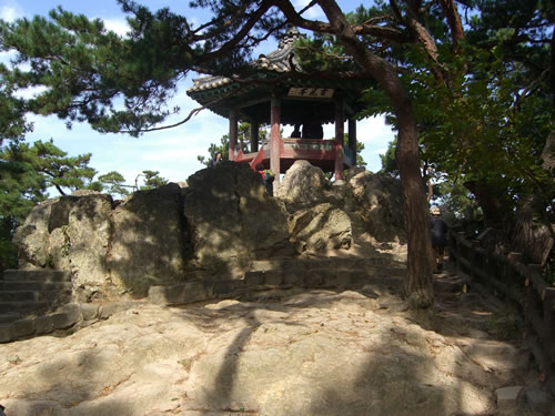 10 日朝は朝食が済むと近くの熊の廟に詣でた、二日連続で散歩した。静かでとても美しい場所、 この熊の廟が公州の伝説の物語の場所である。行かれてない方は残念だった。さて、この日短時間だがYATOO(野投)の美術山(ミスルサン)?を訪問し て、時間が無いので直ぐに国立公州博物館に行き、85歳の日本語が達者な方のレクチャーを受ける。会長のYoo,Soon-Sikさんの先輩らしい。博物 館の展示も一緒に見て、その後昼食、公山城前のトルソッパ(豆ご飯)を頂いて、根岸さんの要望もあった東学農民の乱・終焉の地記念塔に立ち寄る。ここ公州 は百済国の危機の時代の都であったが、同時に近代に朝鮮で起きた大規模な革命戦争の終焉の場所でもあった。