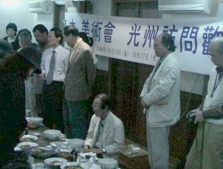 それと、14日の韓国美術協会光州支部の歓迎夕食会(光州市副市長さんも参加)。同16日お別れ夕食会も催さ れました。朴智澤会長、重鎮の林炳星氏、協会の皆様に心より感謝したい。暖かいもてなしの心を感じた旅だった。
