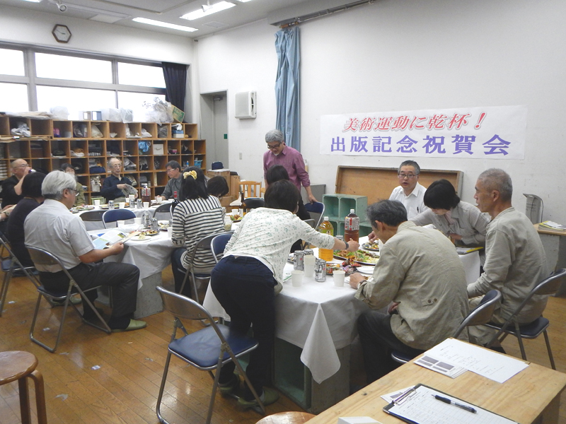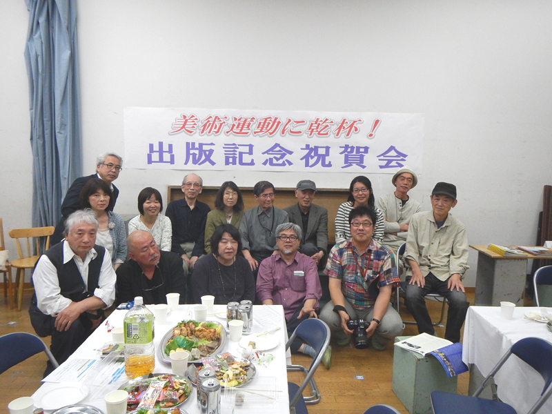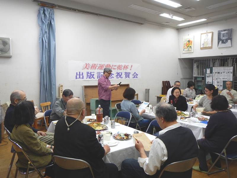 今年の「美術運動」を手に取った感想はいかがでしたか。ページが増えた分、ちょっと重くかさばった感じを受けた事でしょう。その逆にデザインのシャープさで、幾分スマートに感じられたかもしれません。中身の記事もバラエティに富み、充実した内容との評判です。入稿直前には色々なアクシデントもあり、ひやひやした場面もありましたが、編集委員全員の協力により、アンデパンダンの会期に間に合わせることができました。このことを祝うと同時に、執筆者や会員への感謝と今後の機関誌発行の展望を開くために、5月11日の午後に出版記念祝賀会を日美アトリエで開催いたしました。