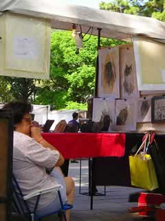 9月21日春分の日まで朝は5℃前後でカイロを背中にしょって通勤していましたが、24日の今日は、裸の人、ノー スリーブの人が散歩していて、花屋の店先も色とりどりの花が良い匂いを放っています。日本にも春は名のみの風の寒さやと歌にありますが、アルゼンチンは春 に突然変わります。冬即暑い春、余韻などの感覚を持つ暇はありません。ポルテーニョ(ブエノス在住人)たちは、公園で日光浴をしていました。太陽が出てい ると、外へ出て老いも、若きも、犬も、赤ちゃんも楽しんでいます。私も近くの広場に行って、大道芸人の炎と話芸を見て、タロット占いをしている人の顔を観 察し、フェリアと呼ばれる屋台の店を見て廻りました。このフェリアはほとんど手作りのものが売られ、これで生計を立てているのだそうです。
