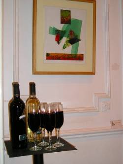 美術館には下の写真のようにワインが用意され、作品を見ながら集まった人たちが歓談したり美術館の人の説明を聞い たり、美術館にあるクラスについて質問したりしていました。私は住んでいる地区にある美術館を回りました。写真は最初に訪れた紙の美術館です。この美術館 では手造りの紙、リトグラフの作品が見られます。使っている素材は麻、綿、古紙の再生、布からの再生、が主で和紙の素材、楮、三椏、雁皮などは使われてい ません。乾燥の方法は参考になるかなと思いました。館員が素材を使ってどのように作成するか実演説明をしていたのは、紙、版画のクラスの宣伝でもあるよう です。